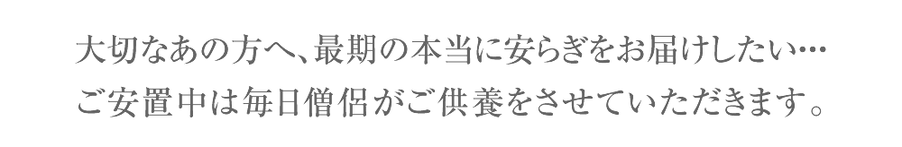 寺院だからこそできる、大切なあの方への最期のプレゼント。ご葬儀までの間、僧侶が毎日供養をいたします。
