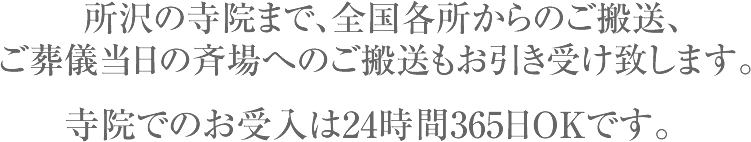 当サイトを運営するワークエクスプレス株式会社は、ご遺体搬送業務を行っている会社です。北海道から九州まで全国各地から所沢までのご遺体の搬送も随時承っております。